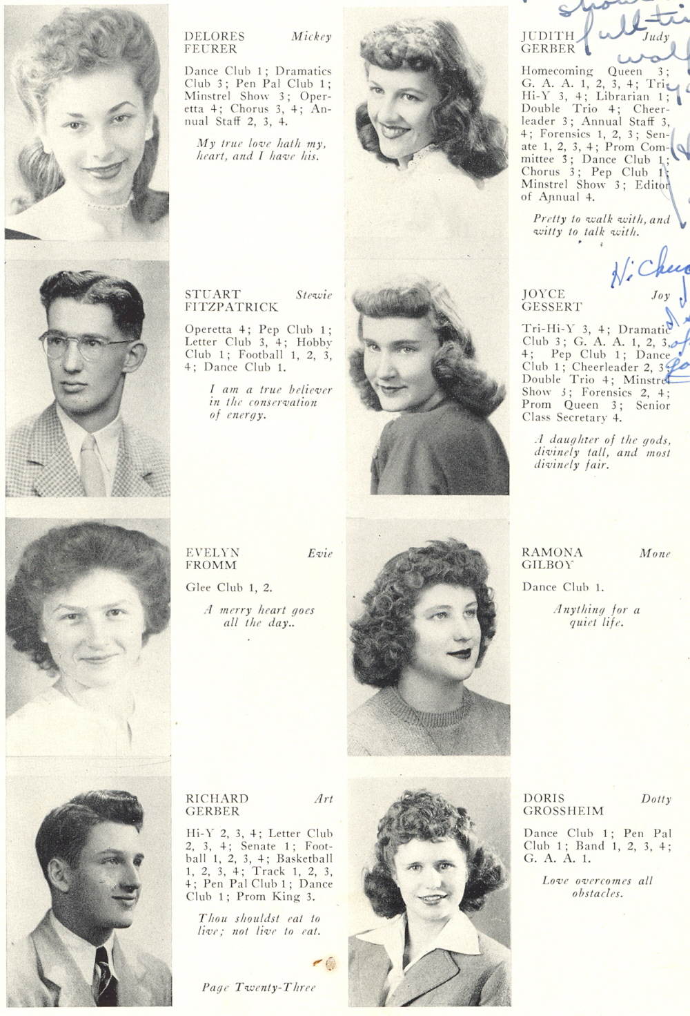 1946 Plymouth High School, Page 23: Delores Feurer, Stuart Fitzpatrick, Evelyn Fromm, Richard Gerber, Judith Gerber, Joyce Gessert, Ramona Gilboy, Doris Grossheim.