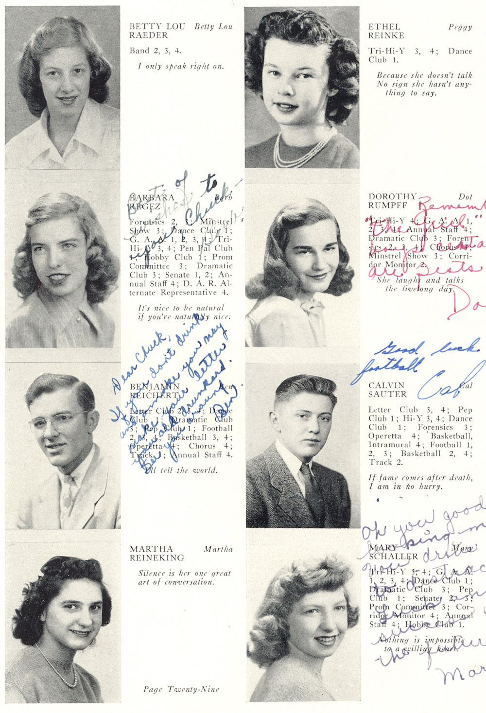1946 Plymouth High School, Page 29: Betty Raeder, Barbara Regez, Benjamin Reichert, Martha Reineking, Ethel Reinke, Dorothy Rumpff, Calvin Sauter, Mary Schaller.
