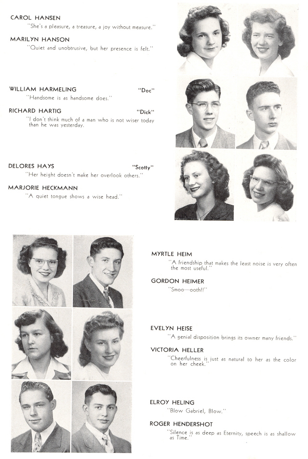 1946 Sheboygan Central High School, Page 35: Carol Hansen, Marilyn Hanson, William Harmeling, Richard Hartig, Delores Hays, Marjorie Heckmann, Myrtle Heim, Gordon Heimer, Evelyn Heise, Victoria Heller, Elroy Heling, Roger Hendershot.