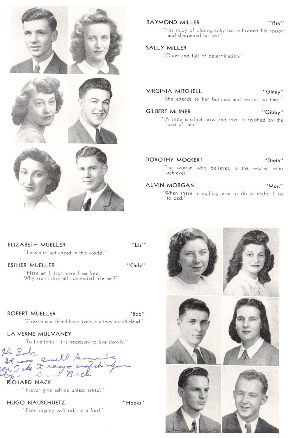 1946 Sheboygan Central High School, Page 42: Raymond Miller, Sally Miller, Virginia Mitchell, Gilbert Mliner, Dorothy Mockert, Alvin Morgan, Elizabeth Mueller, Esther Mueller, Robert Mueller, La Verne Mulvaney, Richard Nack, Hugo Nauschuetz.