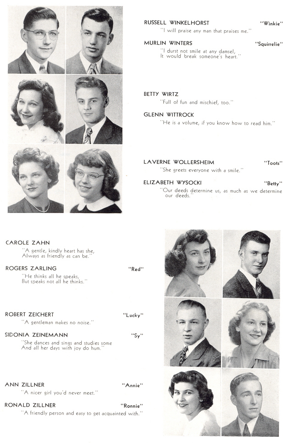 1946 Sheboygan Central High School, Page 53: Russell Winkelhorst, Murlin Winters, Betty Wirtz, Glenn Wittrock, LaVerne Wollershein, Elizabeth Wysocki, Carole Zahn, Rogers Zarling, Robert Zeichert, Sidonia Zeinemann, Ann Zillner, Ronald Zillner.