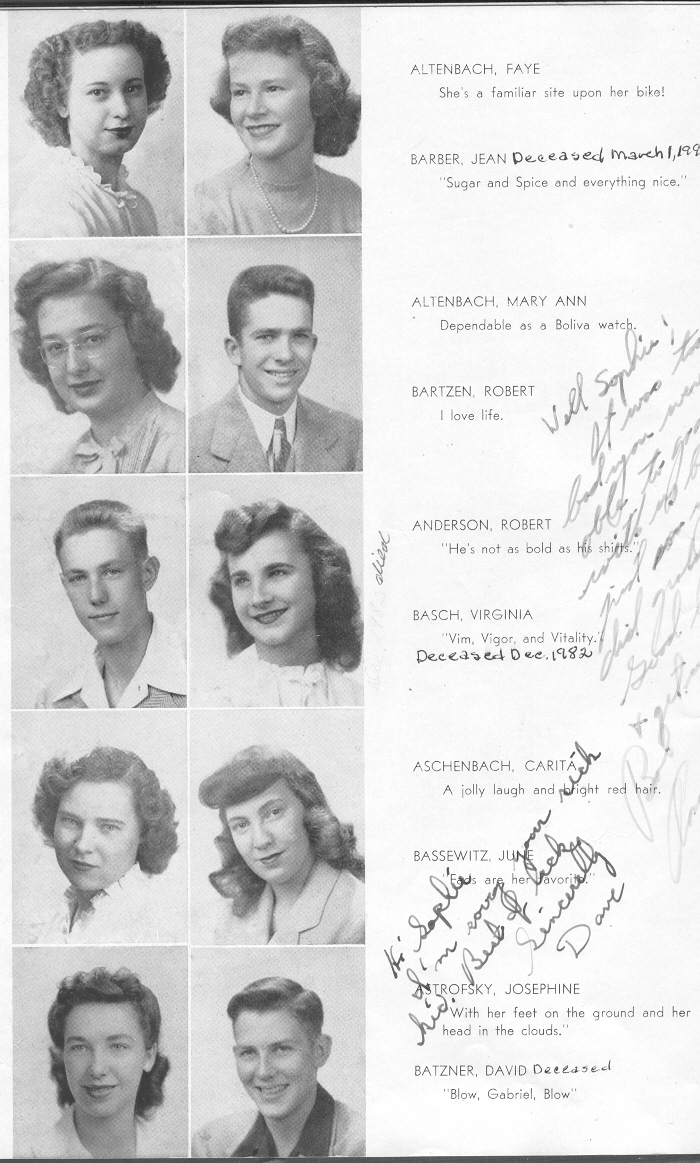 1946 Sheboygan North High School, Page 18: Faye Altenbach, Jean Barber, Mary Altenbach, Robert Bartzen, Robert Anderson, Virginia Basch, Carita Aschenbach, June Basewitz, Josephine Astrofsky, David Batzner.