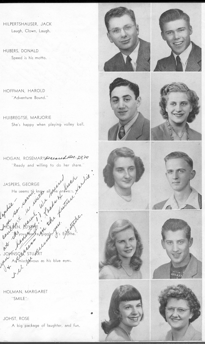 1946 Sheboygan North High School, Page 25: Jack Hilpertshauser, Donald Hubers, Harold Hoffman, Marjorie Huibregtse, Rosemary Hogan, George Jaspers, Edythe Holden, Stuart Johnson, Margaret Holman, Rose Johst.