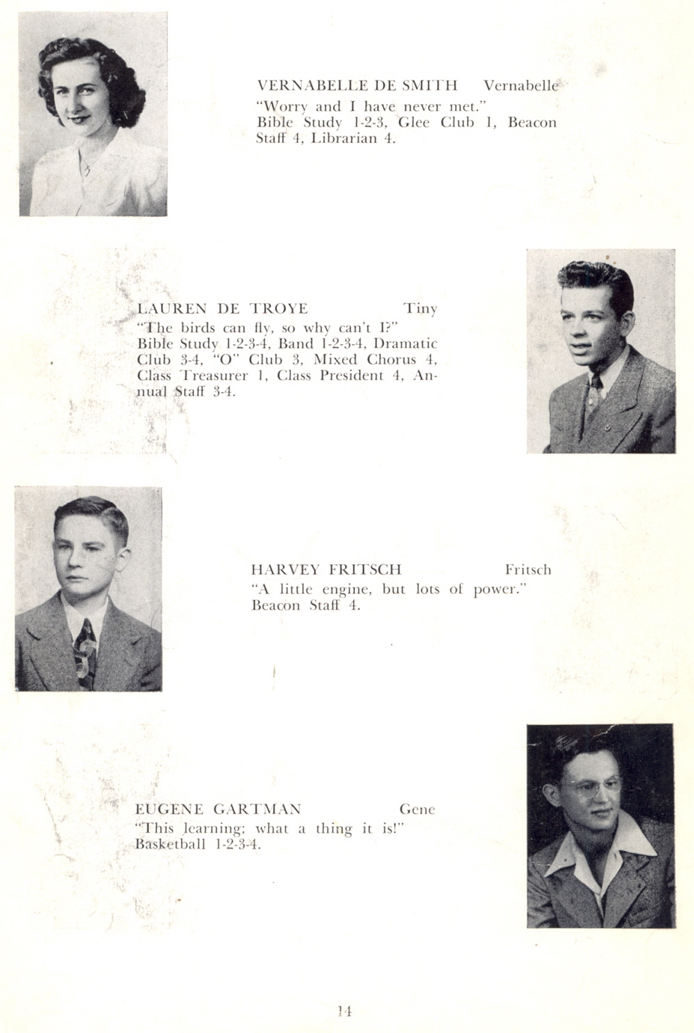 1947 Oostburg High School, Page 14: Vernabelle De Smith, Lauren De Troye, Harvey Fritsch, Eugene Gartman.