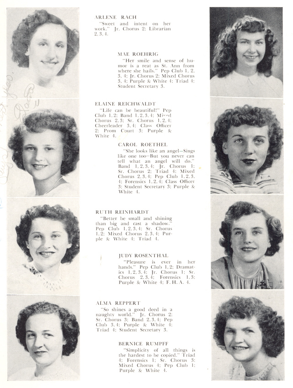 1948 Kiel High School, Page 17: Arlene Rach, Elaine Reichwaldt, Ruth Reinhardt, Alma Reppert, May Roehrig, Carol Roethel, Judy Rosenthal, Bernice Rumpff.