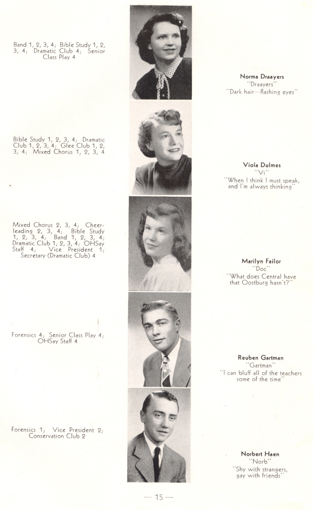 1948 Oostburg High School, Page 15: Norma Draayers, Viola Dulmes, Marilyn Failor, Reuben Gartman, Norbert Haen.