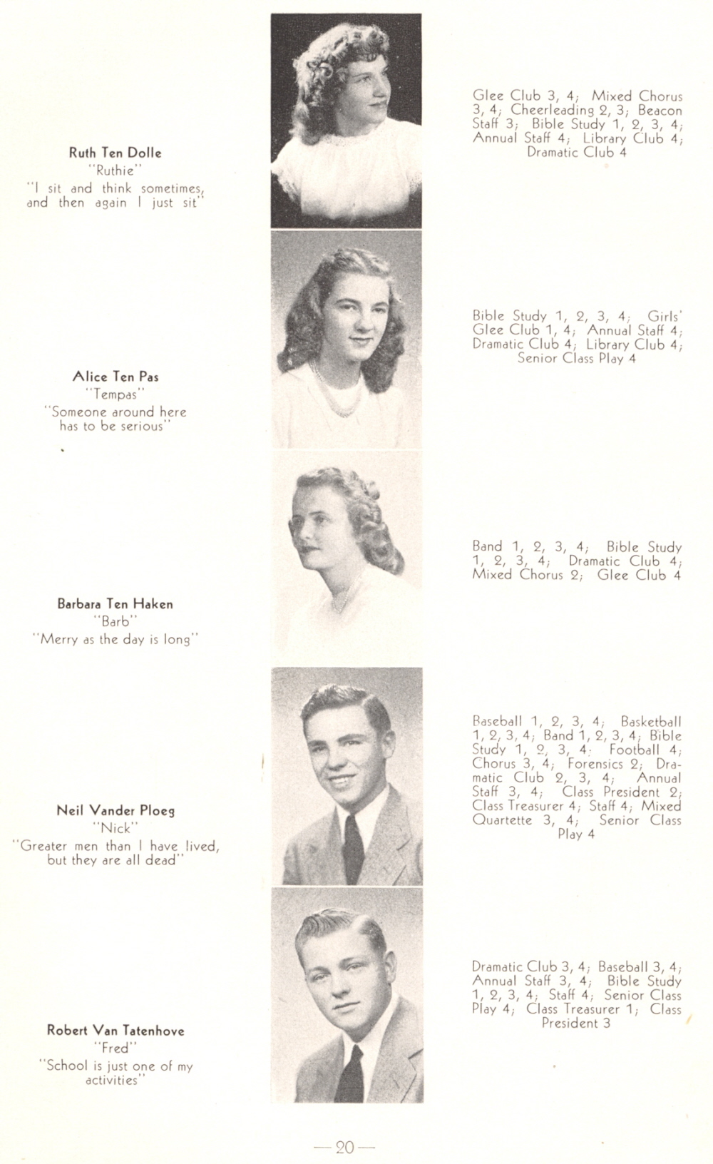 1948 Oostburg High School, Page 20: Ruth Ten Dolle, Alice Ten Pas, Barbara Ten Haken, Neil Vander Ploeg, Robert Van Tatenhove.