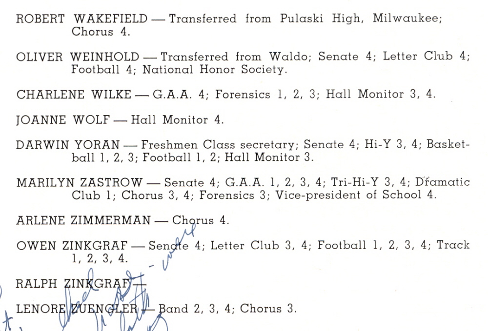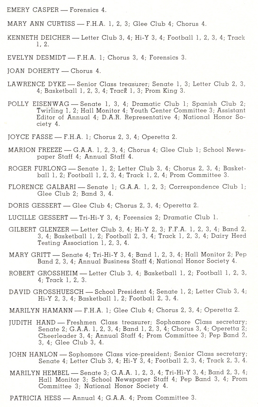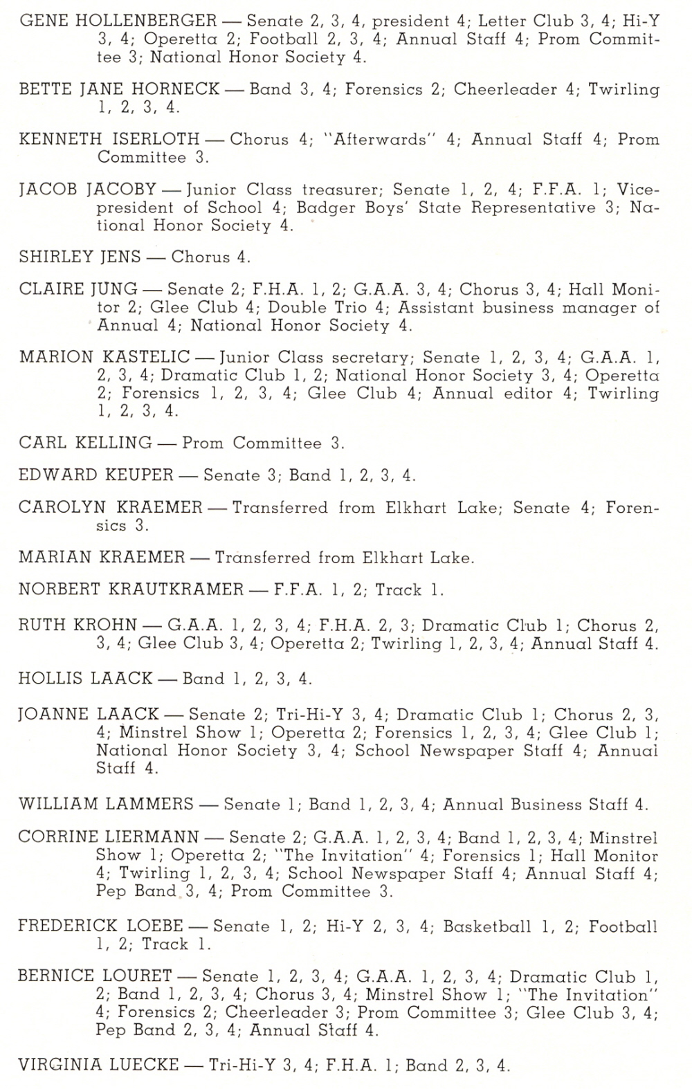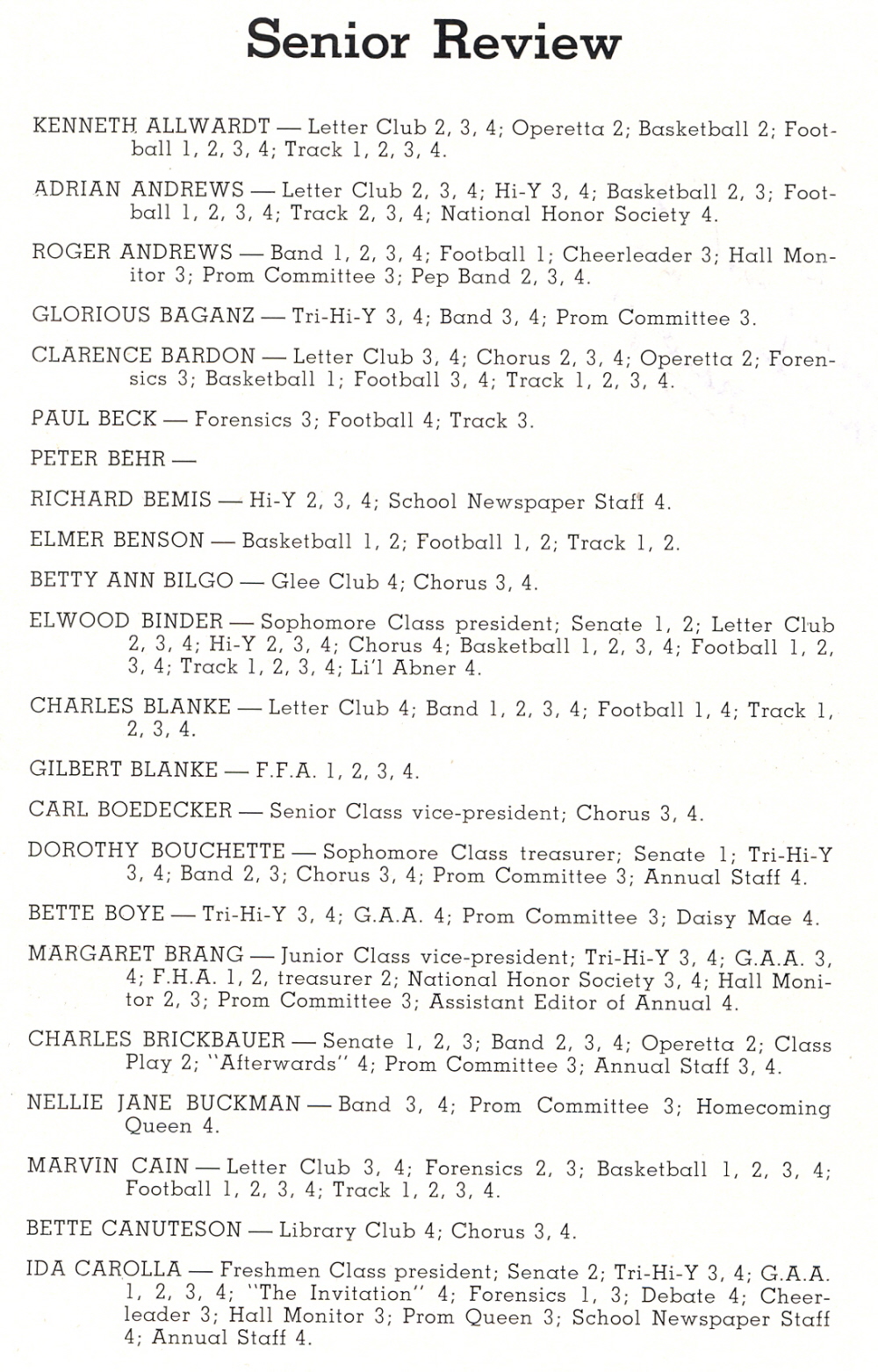1948 Plymouth High School, Page 26: Arlene Zimmermann, Richard Truttschel, Carolyn Kraemer, Warren Schmidt, Ralph Zinkgraf, Carol Pfrang, Alice Raeder, Arno Payne, Roy Miller, Nellie Buckman, Norb. Krautkramer, Alice Ribbeck.