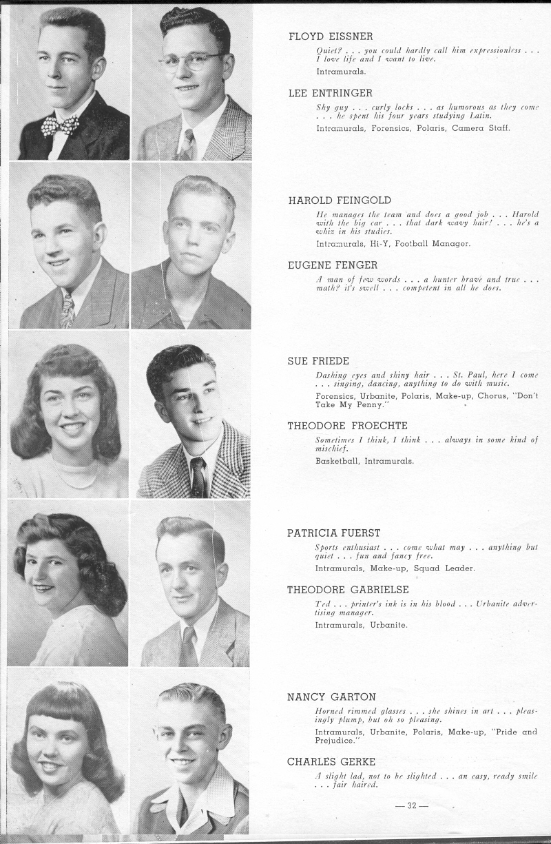 1948 Sheboygan North High School, Page 32: Floyd Eissner, Lee Entringer, Harold Feingold, Eugene Fenger, Sue Friede, Theodore Froechte, Patricia Fuerst, Theodore Gabrielse, Nancy Garton, Charles Gerke.