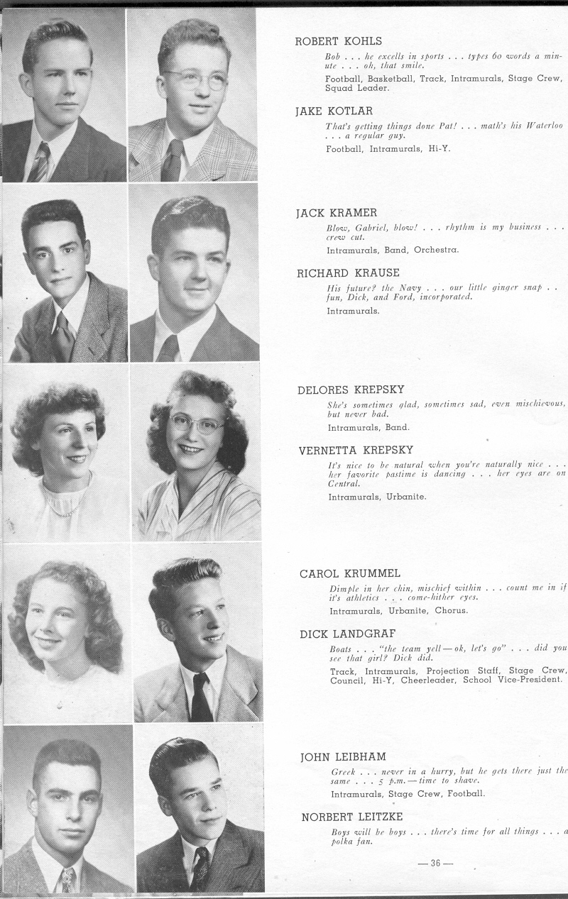 1948 Sheboygan North High School, Page 36: Robert Kohls, Jake Kotlar, Jack Kramer, Richard Krause, Delores Krepsky, Vernetta Krepsky, Carol Krummel, Dick Landgraf, John Leibham, Norbert Leitzke.