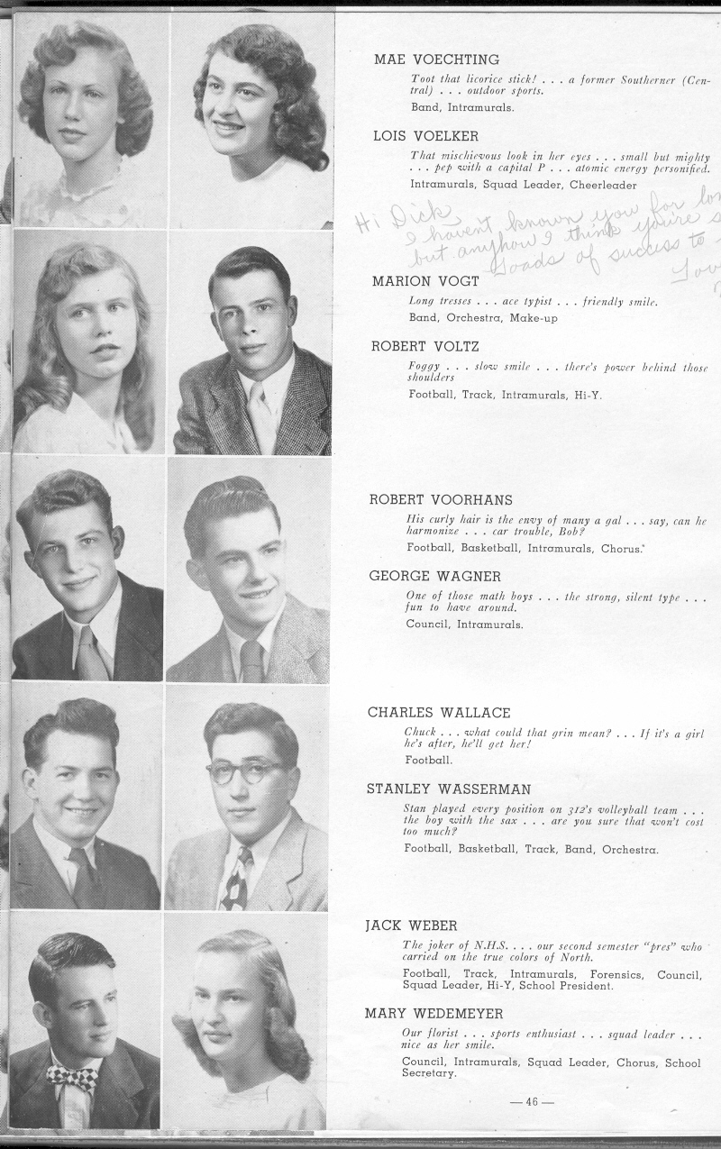 1948 Sheboygan North High School, Page 46: Mae Voechting, Lois Voelker, Marion Vogt, Robert Voltz, Robert Voorhans, George Wagner, Charles Wallace, Stanley Wasserman, Jack Weber, Mary Wedemeyer.