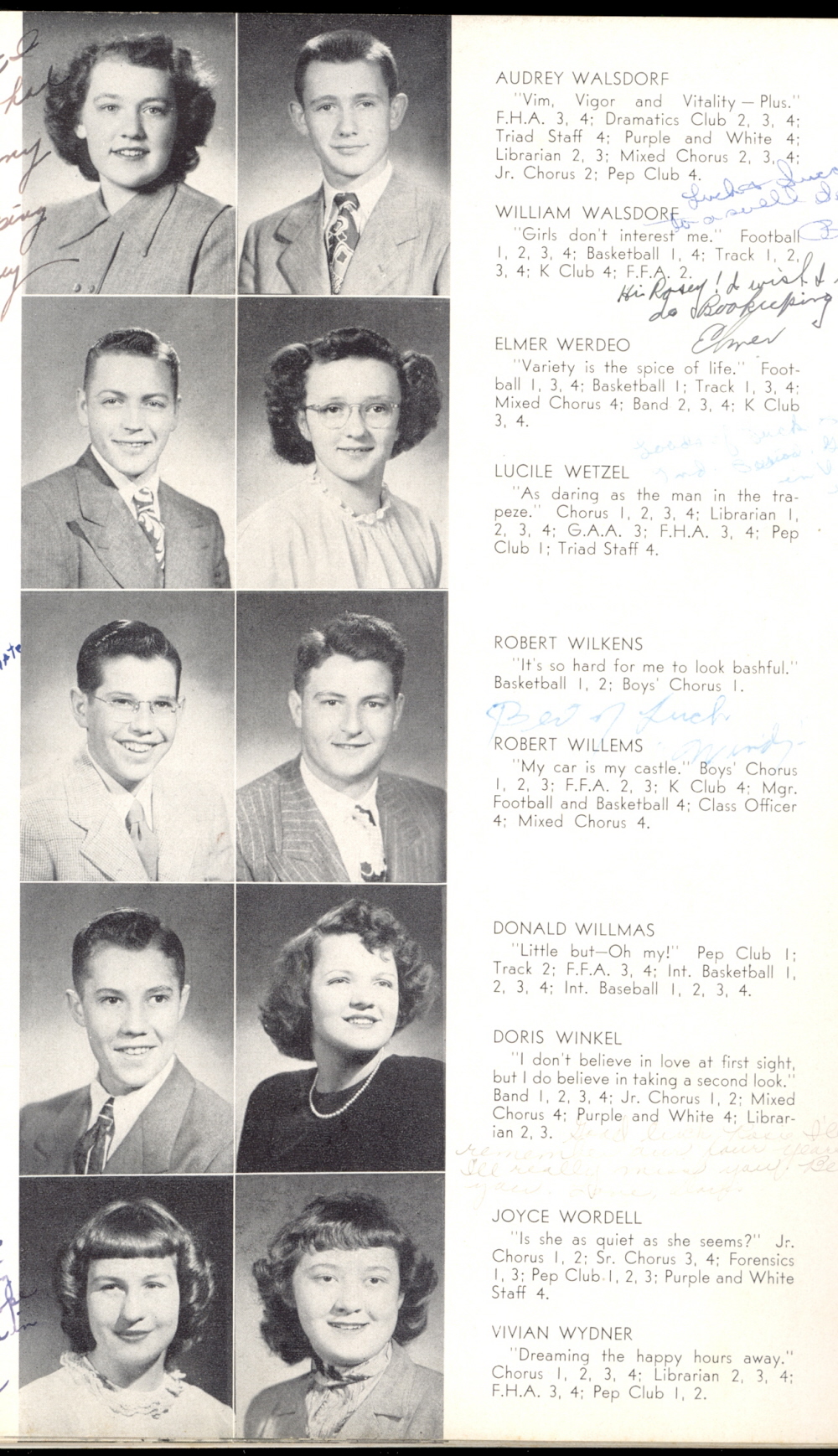1949 Kiel High School, Page 18: Audrey Walsdorf, William Walsdorf, Elmer Werdeo, Lucile Wetzel, Robert Wilkins, Robert Willems, Donald Willmas, Doris Winkel, Joyce Wordell, Vivian Wydner.