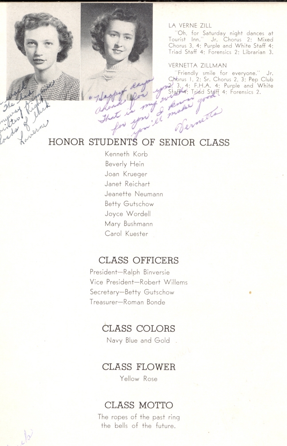 1949 Kiel High School, Page 19: La Verne Zill, Vernetta Zillman.