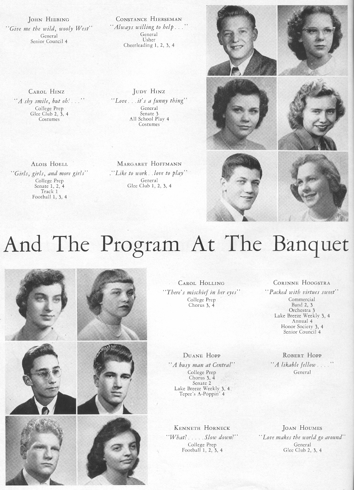 1949 Sheboygan Central High School, Page 30: John Hiebing, Constance Hierseman, Carol Hinz, Judy Hinz, Alois Hoell, Margaret Hoffmann, Carol Holling, Corinne Hoogstra, Duane Hopp, Robert Hopp, Kenneth Horneck, Joan Houmes.