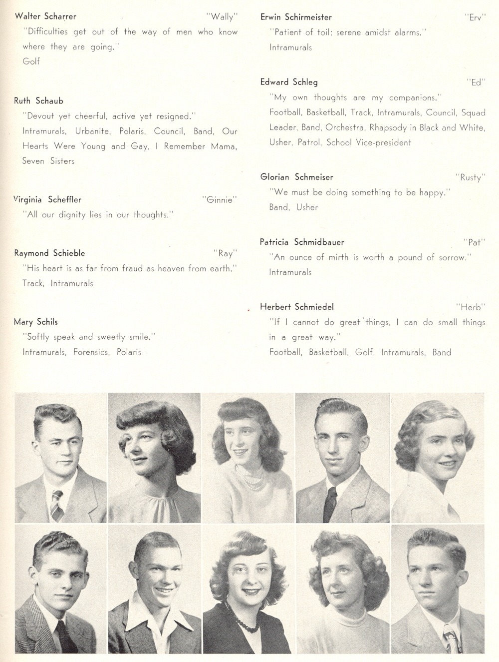 1949 Sheboygan North High School, Page 39: Walter Scharrer, Ruth Schaub, Virginia Scheffler, Raymond Schieble, Mary Schils, Erwin Schirmeister, Edward Schleg, Glorian Schmeiser, Patricia Schmidbauer, Herbert Schmiedel.