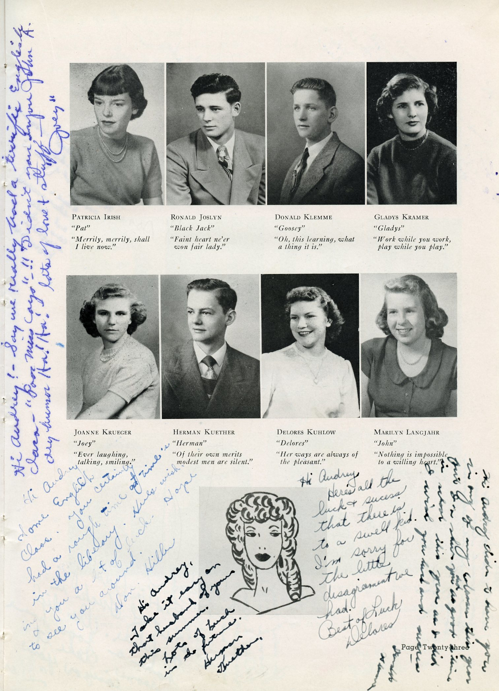 1950 Plymouth High School Yearbook Page 23: Patricia Irish, Ronald Joslyn, Donald Klemme, Gladys Kramer, Joanne Krueger, Herman Kuether, Delores Kuhlow, Marilyn Langjahr.