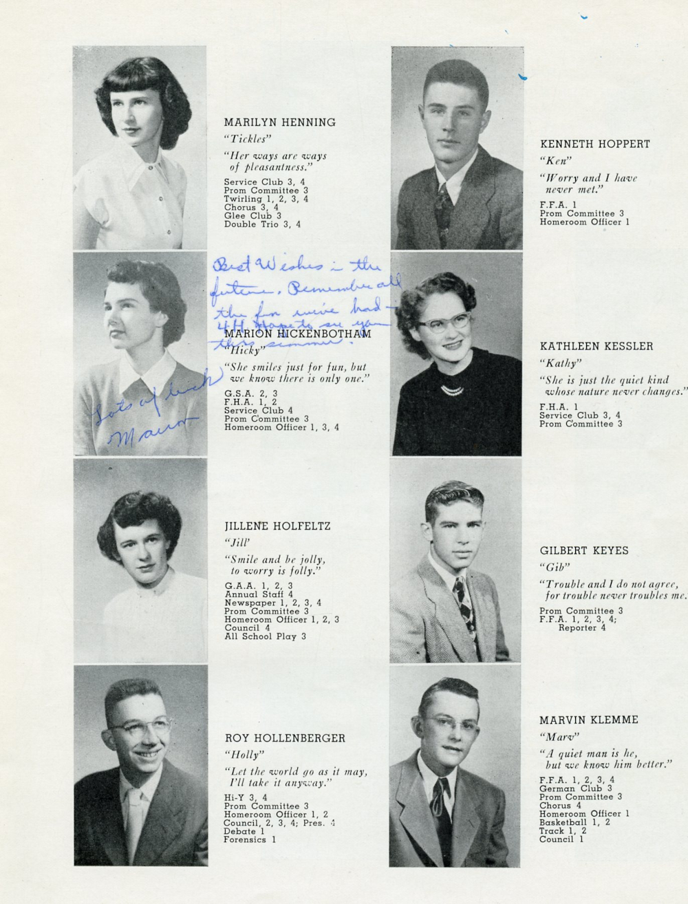 1951 Plymouth High School Yearbook Page 21: Marilyn Henning, Marion Hickenbotham, Jillene Holfeltz, Roy Hollenberger, Kenneth Hoffert, Kathleen Kessler, Gilbert Keyes, Marvin Klemme.