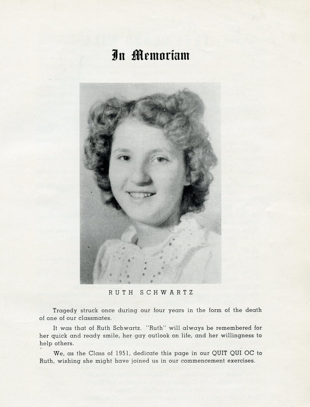1951 Plymouth High School Yearbook Page 29: Ruth Schwartz.