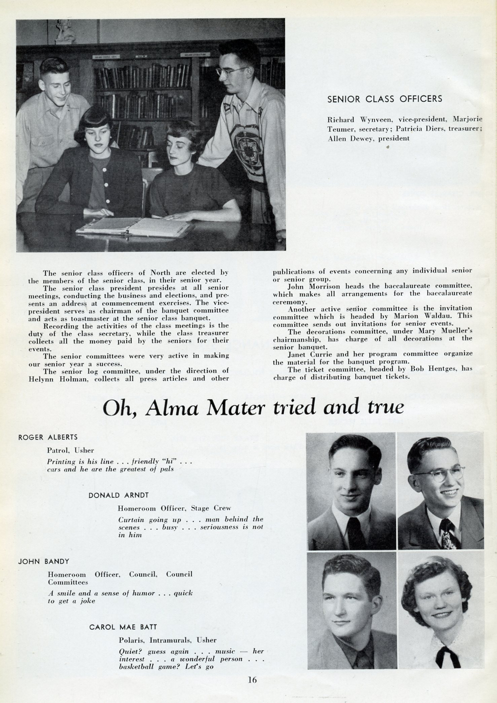 1951 Sheboygan North High School, Page 16: Roger Alberts, Donald Arndt, John Bandy, Carol Mae Batt.