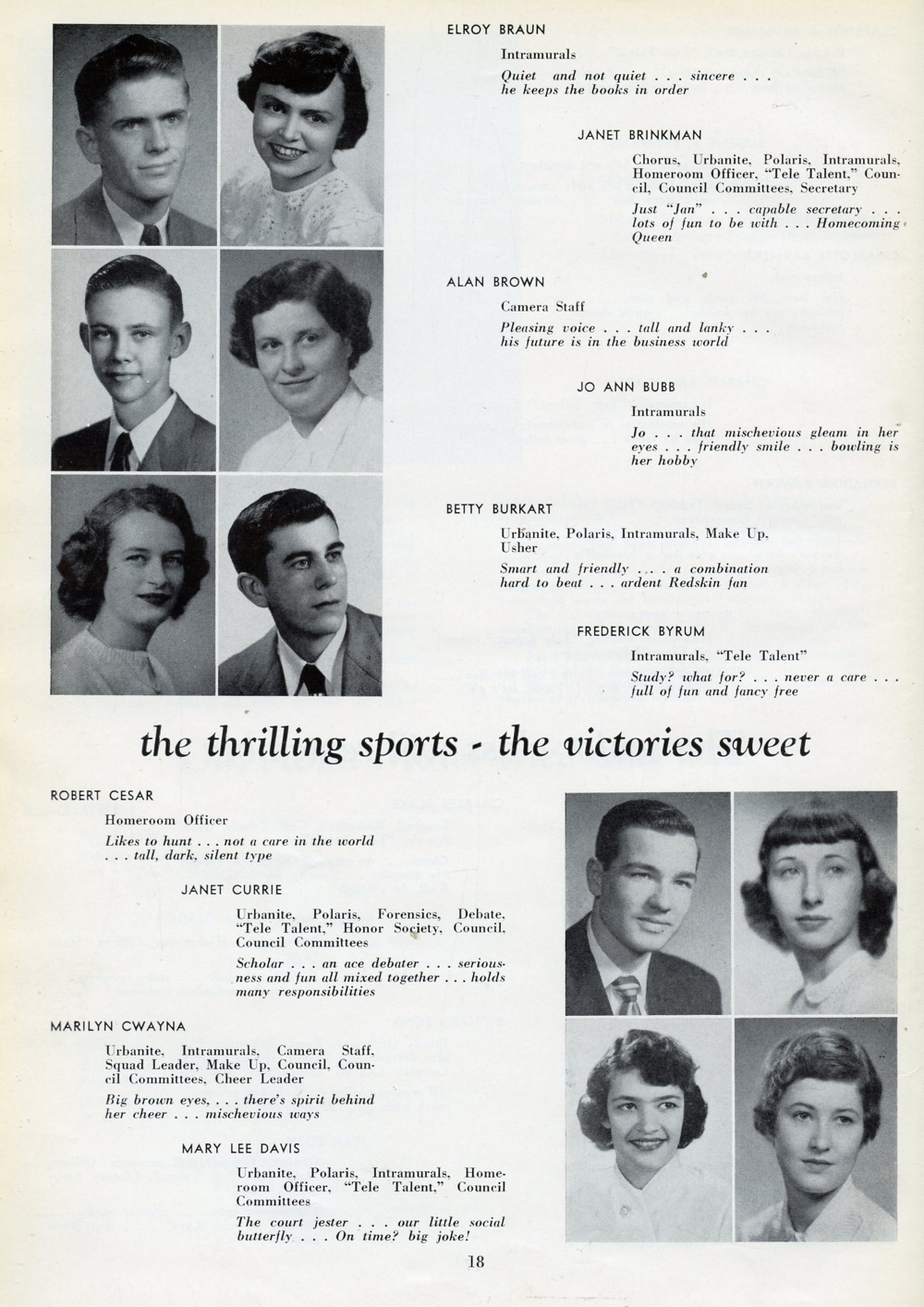 1951 Sheboygan North High School, Page 18: Elroy Braun, Janet Brinkman, Alan Brown, Jo Ann Bubb, Betty Burkart, Frederick Byrum,Robert Cesar, Janet Currie, Marilyn Cwayna, Mary Lee Davis.