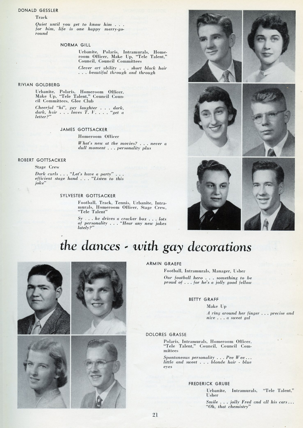 1951 Sheboygan North High School, Page 21: Donald Gessler, Norma Gill, Rivian Goldberg, James Gottsacker, Robert Gottsacker, Sylvester Gottsacker, Armin Graefe, Betty Graff, Dolores Grasse, Frederick Grube.