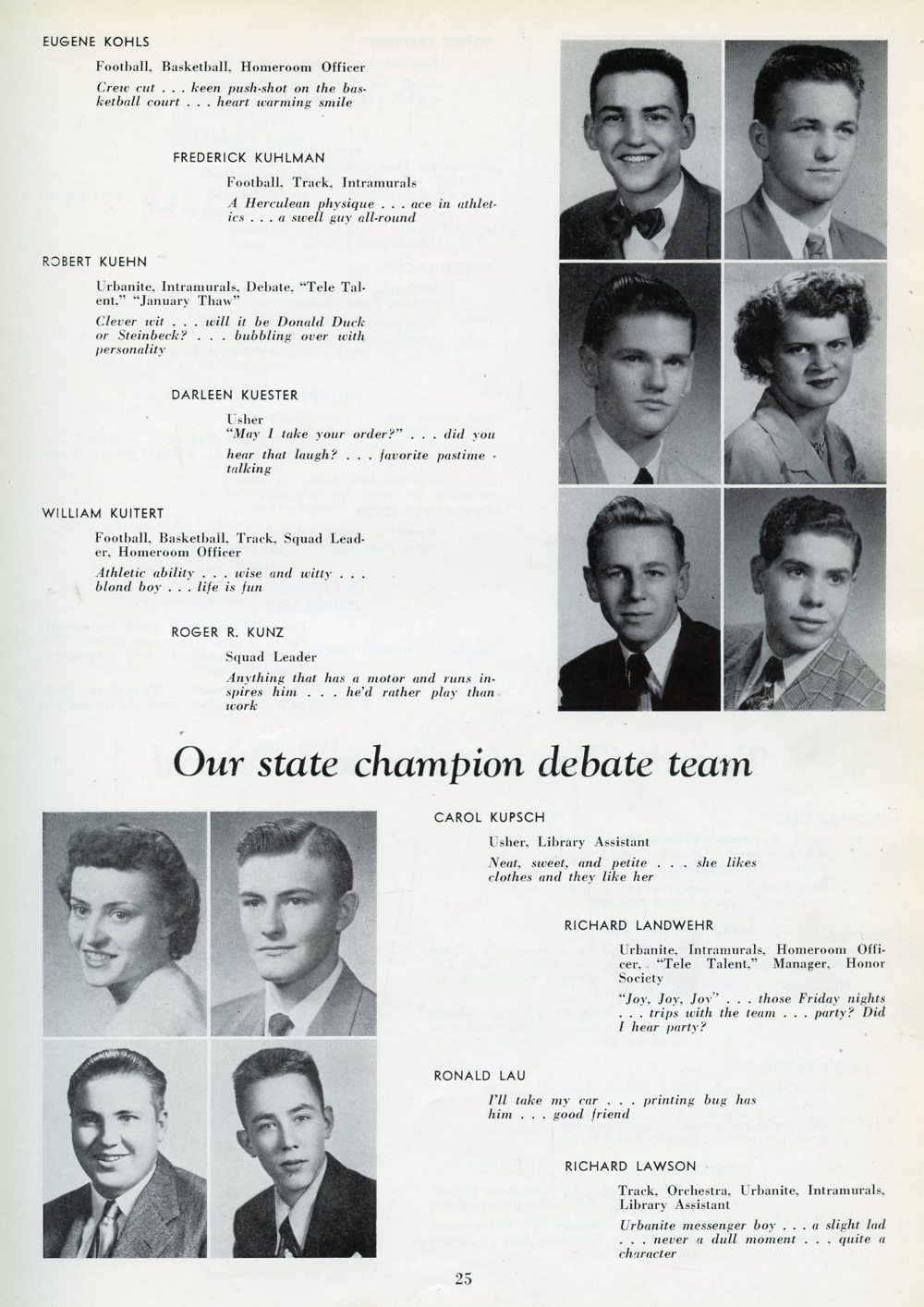 1951 Sheboygan North High School, Page 25: Eugene Kohls, Frederick Kuhlman, Robert Kuehn, Darleen Kuester, William Kuitert, Roger Kunz, Carol Kupsch, Richard Landwehr, Ronald Lau, Richard Lawson.