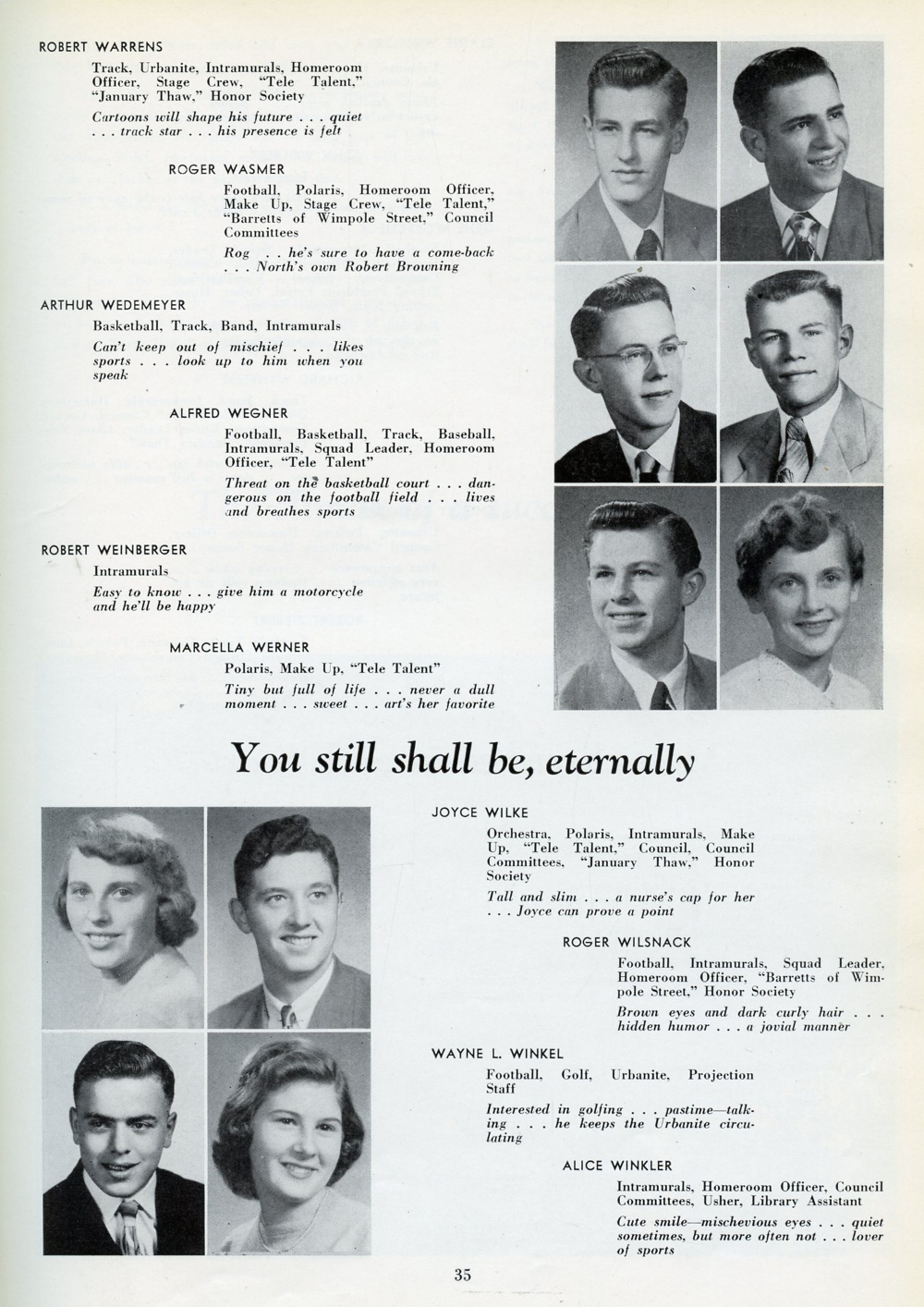 1951 Sheboygan North High School, Page 35: Robert Warrens, Roger Wasmer, Arthur Wedemeyer, Alfred Wegner, Robert Weinberger, Marcella Werner, Joyce Wilke, Roger Wilsnack, Wayne Winkel, Alice Winkler.