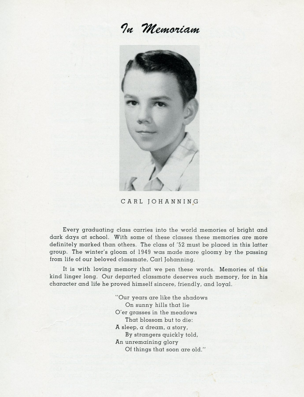 1952 Plymouth High School Yearbook Page 31: Carl Johanning.