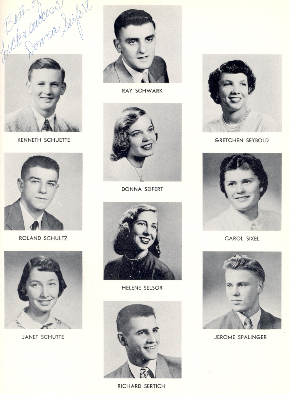 1952 Sheboygan Central High School, Page 119: Kenneth Schuette, Roland Schultz, Janet Schutte, Ray Schwark, Donna Seifert, Helene Selsor, Richard Sertich, Gretchen Seybold, Carol Sixel, Jerome Spalinger.