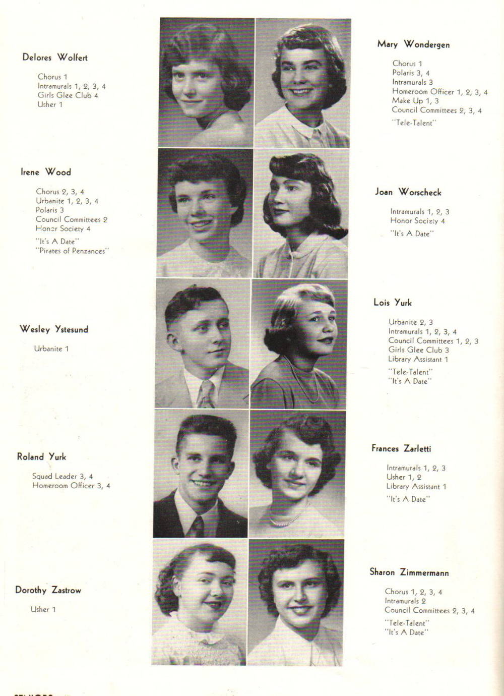 1952 Sheboygan North High School, Page 48: Delores Wolfert, Mary Wondergen, Irene Wood, Joan Worscheck, Wesley Ystesund, Lois Yurk, Roland Yurk, Frances Zarletti, Dorothy Zastrow, Sharon Zimmermann.