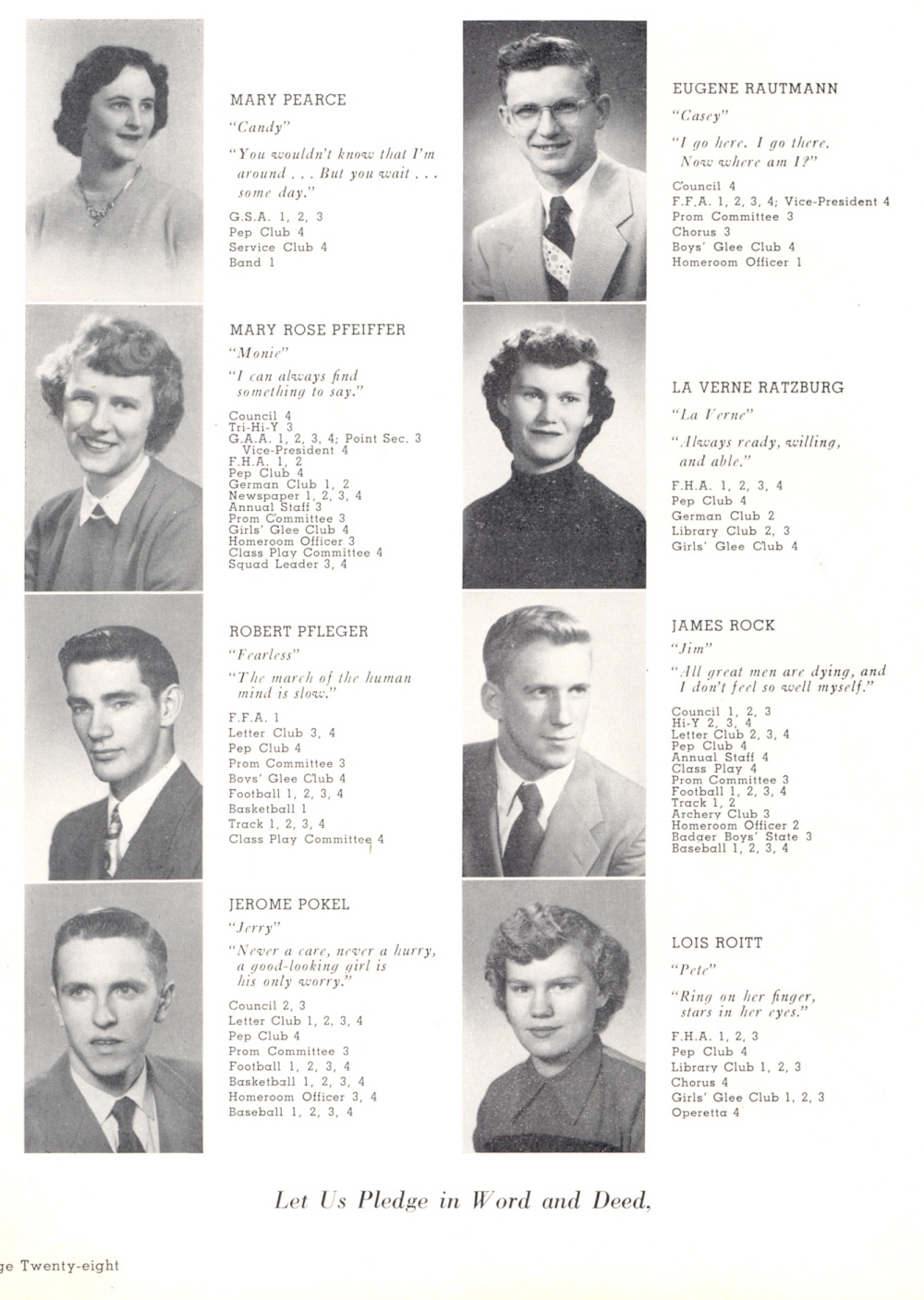 1953 Plymouth High School, Page 28: Mary Pearce, Mary Rose Pfeiffer, Robert Pfleger, Jerome Pokel, Eugene Rautmann, La Verne Ratzburg, James Rock, Lois Roitt.