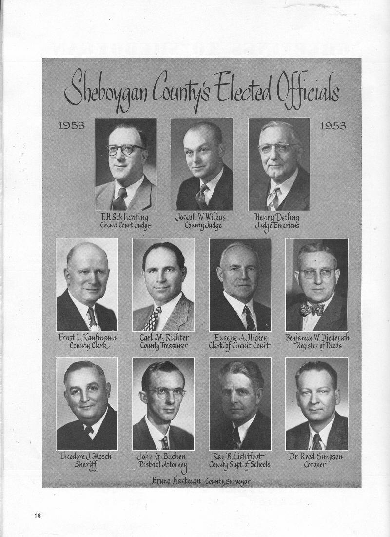 1953 Sheboygan Centennial Celebration, Page 18, Photos--Sheboygan County's Elected Officials for 1953: