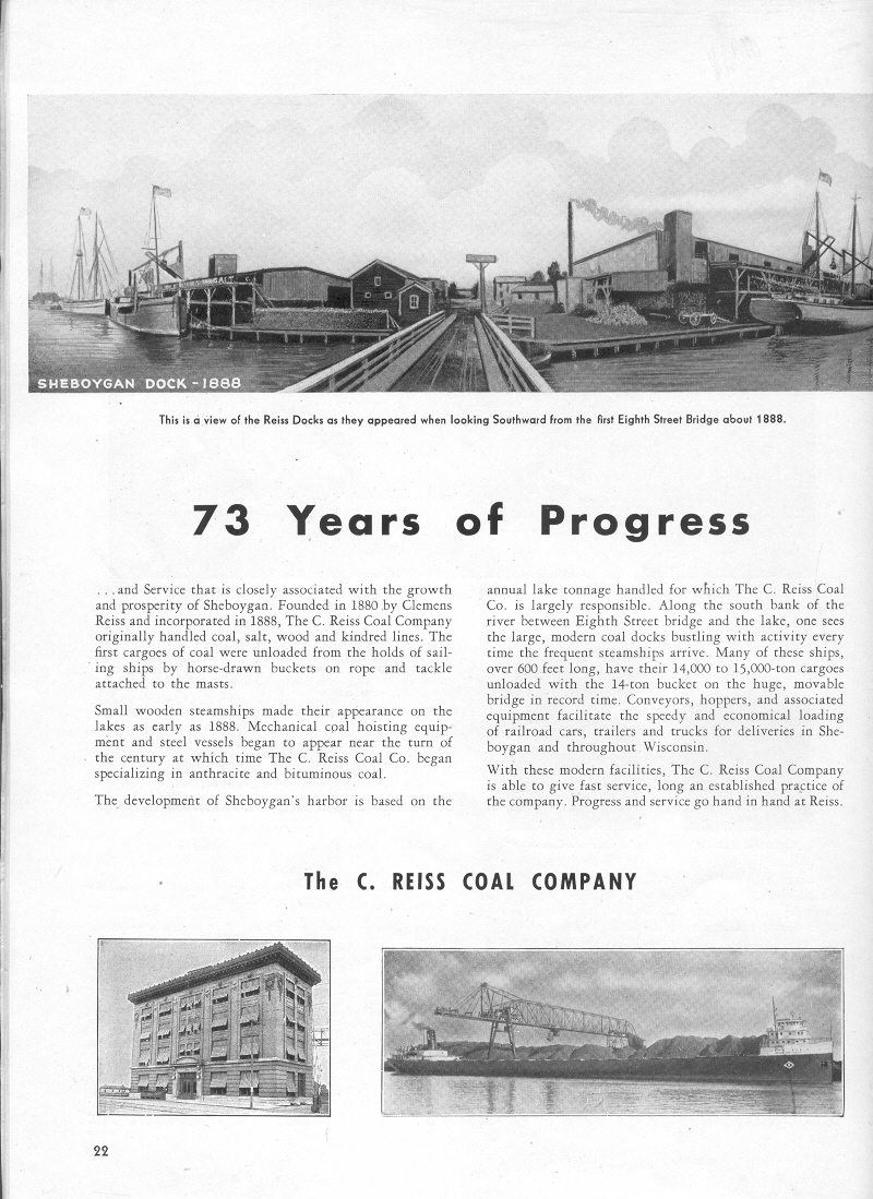 1953 Sheboygan Centennial Celebration, Page 22, Ad for the C. Reiss Coal Company (photos):
