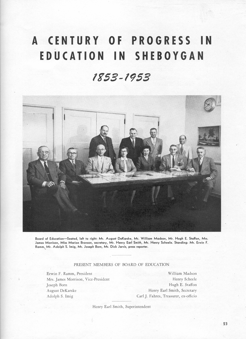 1953 Sheboygan Centennial Celebration, Page 23, Photo--Present Members of Board of Education: