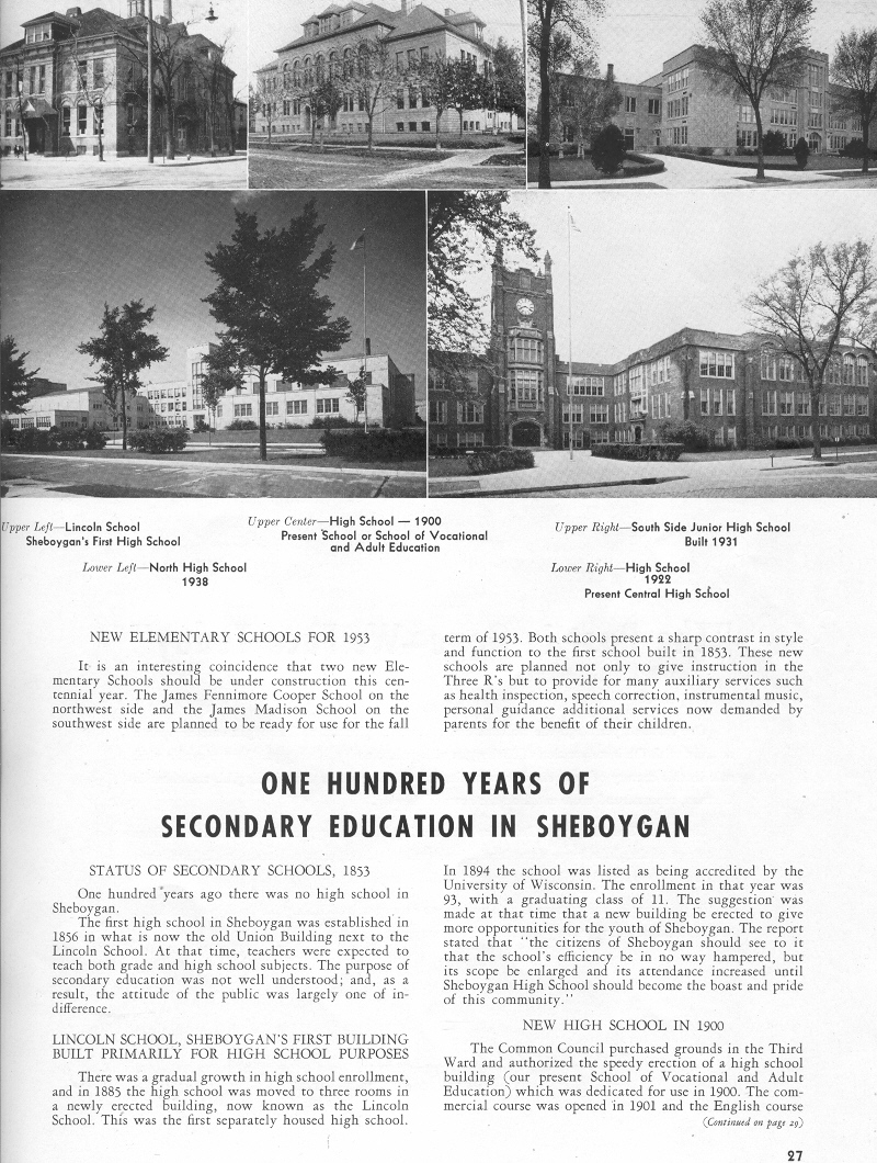 1953 Sheboygan Centennial Celebration, Page 27, History of Education in Sheboygan, Page 2 (photos):