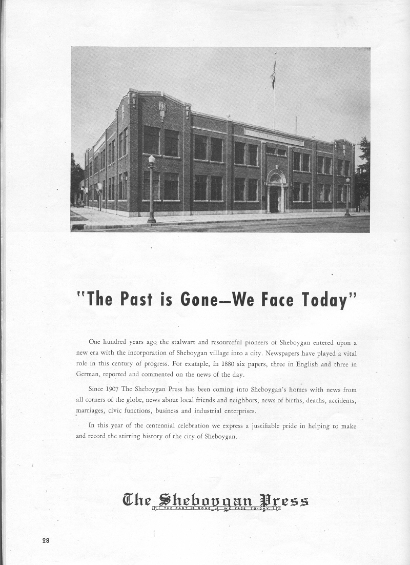 1953 Sheboygan Centennial Celebration, Page 28, Ad for The Sheboygan Press (photo):