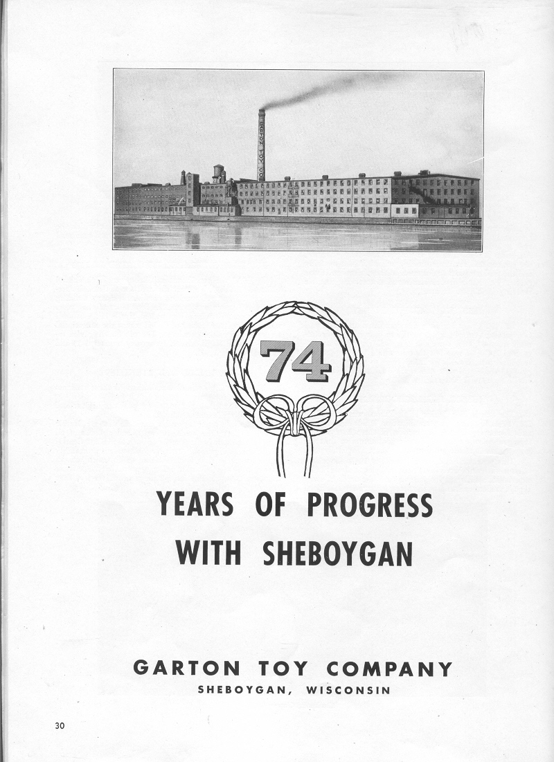 1953 Sheboygan Centennial Celebration, Page 30, Ad for the Garton Toy Company (photo):