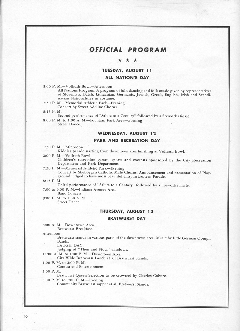 1953 Sheboygan Centennial Celebration, Page 40, Official Program, Sheboygan Centennial Celebration, Page 2: