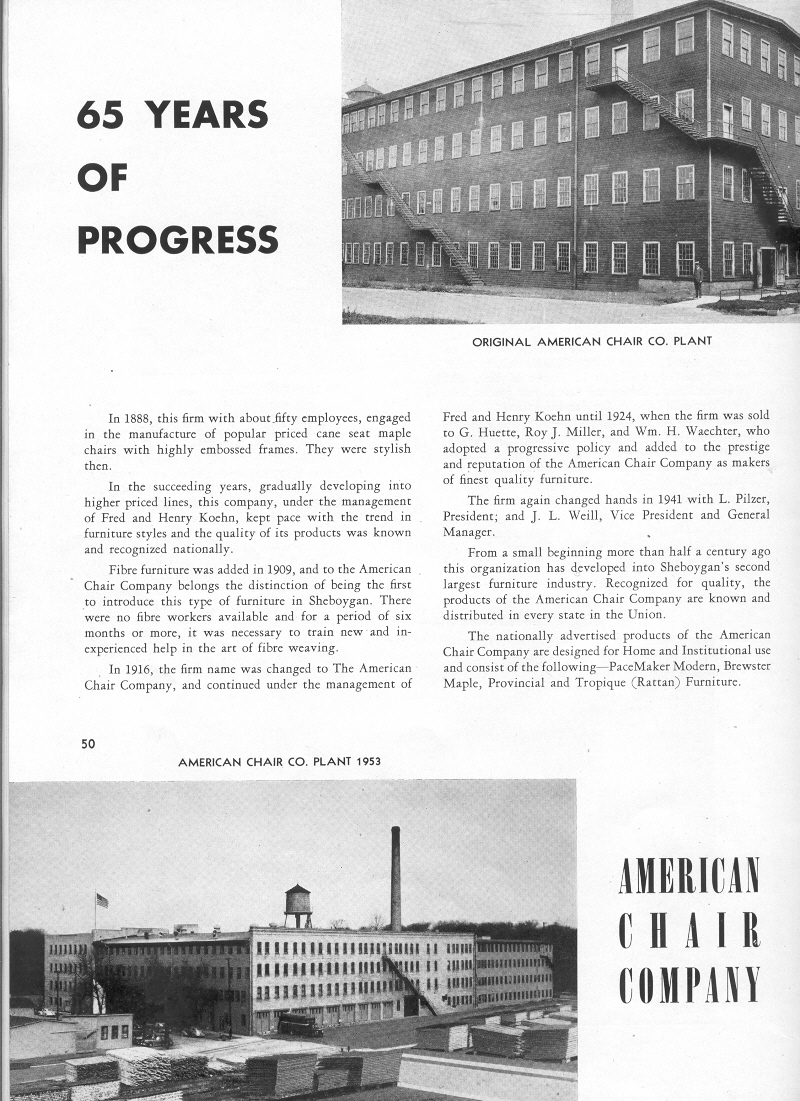 1953 Sheboygan Centennial Celebration, Page 50, Ad for the American Chair Company (photos):
