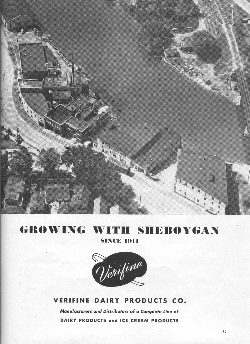 1953 Sheboygan Centennial Celebration, Page 75, Ad for the Verifine Dairy Products Co. (photo):