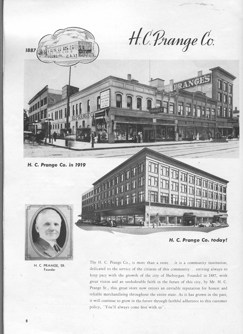 1953 Sheboygan Centennial Celebration, Page 8, Ad for the H. C. Prange Co. (photos):