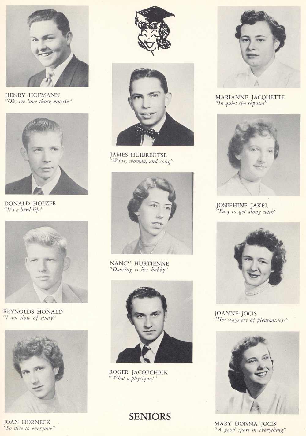1953 Sheboygan Central High School, Page 21: Henry Hofmann, Donald Holzer, Reynolds Honald, Joan Horneck, James Huibregtse, Nancy Hurtienne, Roger Jacobchick, Marianne Jacquette, Josephine Jakel, Joanne Jocis, Mary Donna Jocis.