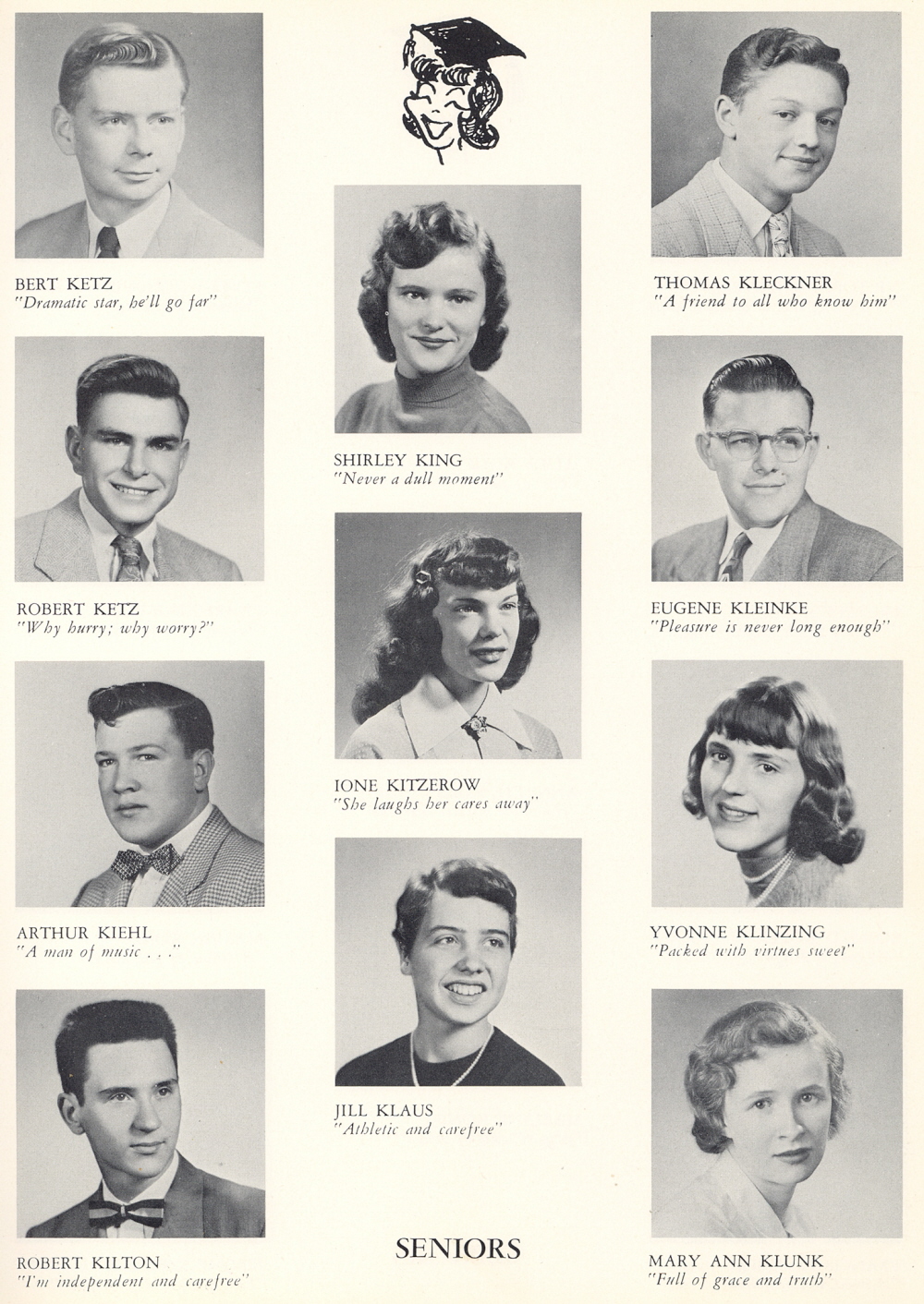 1953 Sheboygan Central High School, Page 23: Bert Ketz, Robert Ketz, Arthur Kiehl, Robert Kilton, Shirley King, Ione Kitzerow, Jill Klaus, Thomas Kleckner, Eugene Kleinke, Yvonne Klinzing, Mary Ann Klunk.