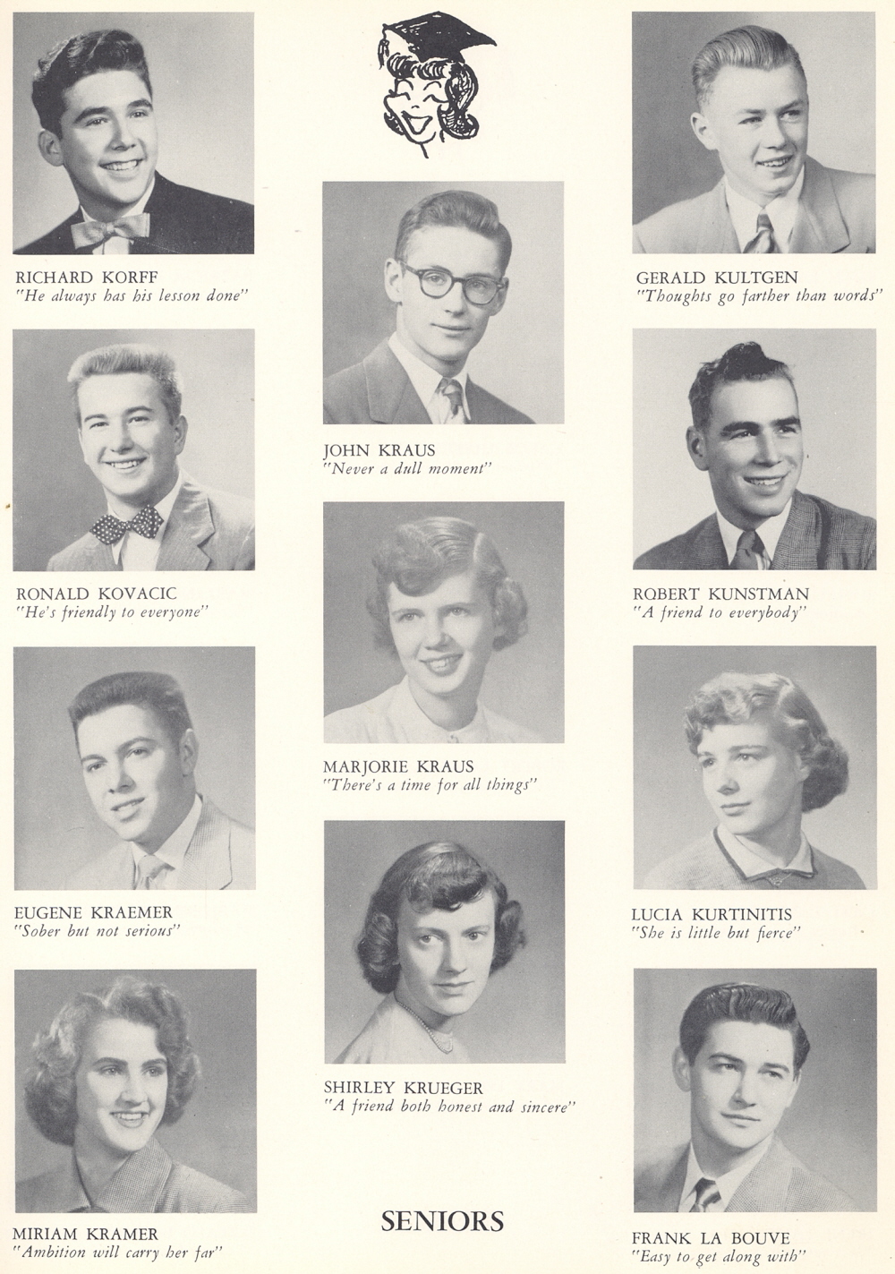 1953 Sheboygan Central High School, Page 25: Richard Korff, Ronald Kovacic, Eugene Kraemer, Miriam Kramer, John Kraus, Marjorie Kraus, Shirley Krueger, Gerald Kultgen, Robert Kunstman, Lucia Kurtinitis, Frank La Bouve.
