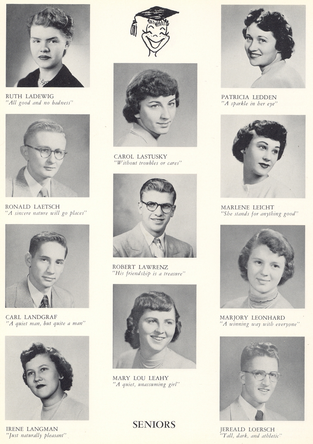 1953 Sheboygan Central High School, Page 26: Ruth Ladewig, Ronald Laetsch, Carl Landgraf, Irene Langman, Carol Lastusky, Robert Lawrenz, Mary Lou Leahy, Patricia Ledden, Marlene Leicht, Marjory Leonhard, Jereald Loersch.