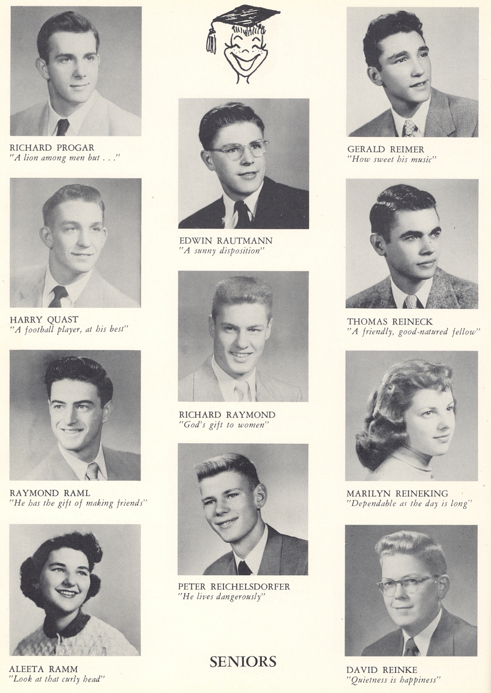 1953 Sheboygan Central High School, Page 32: Richard Progar, Harry Quast, RAymond Raml, Aleeta Ramm, Edwin Rautmann, Richard Raymond, Peter Reichelsdorfer, Gerald Reimer, Thomas Reincek, Marilyn Reineking, David Reinke.