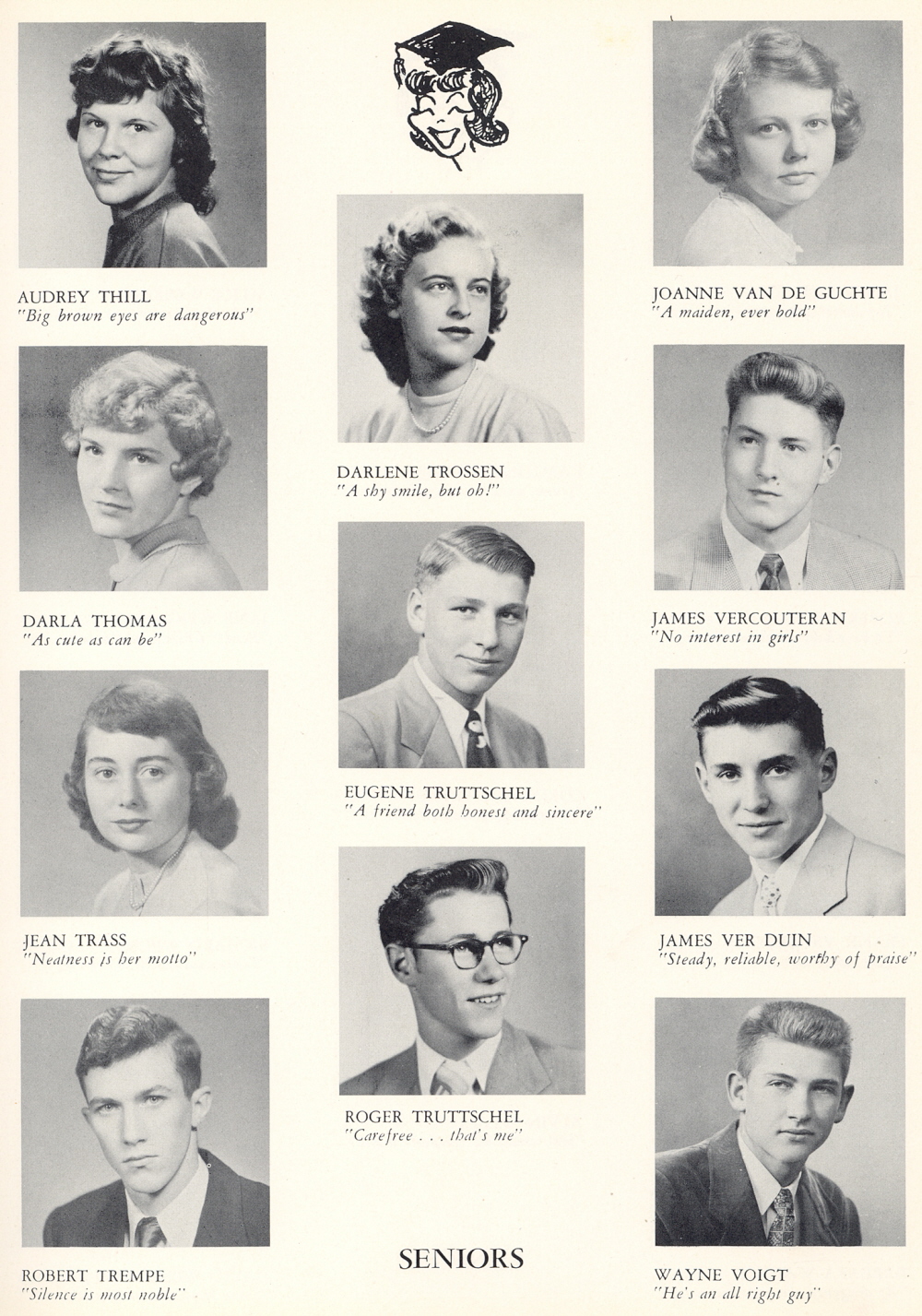1953 Sheboygan Central High School, Page 39: Audrey Thill, Darla Thomas, Jean Trass, Robert Trempe, Darlene Trossen, Eugene Truttschel, Roger Truttschel, Joanne Van De Guchte, James Vercouteran, James Ver Duin, Wayne Voigt.