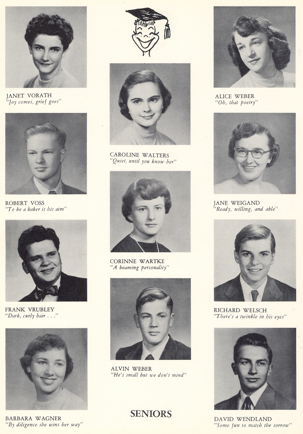 1953 Sheboygan Central High School, Page 40: Janet Vorath, Robert Voss, Frank Vrubley, Barbara Wagner, Caroline Walters, Corinne Wartke, Alvin Weber, Alice Weber, Jane Weigand, Rivhard Welsch, David Wendland.
