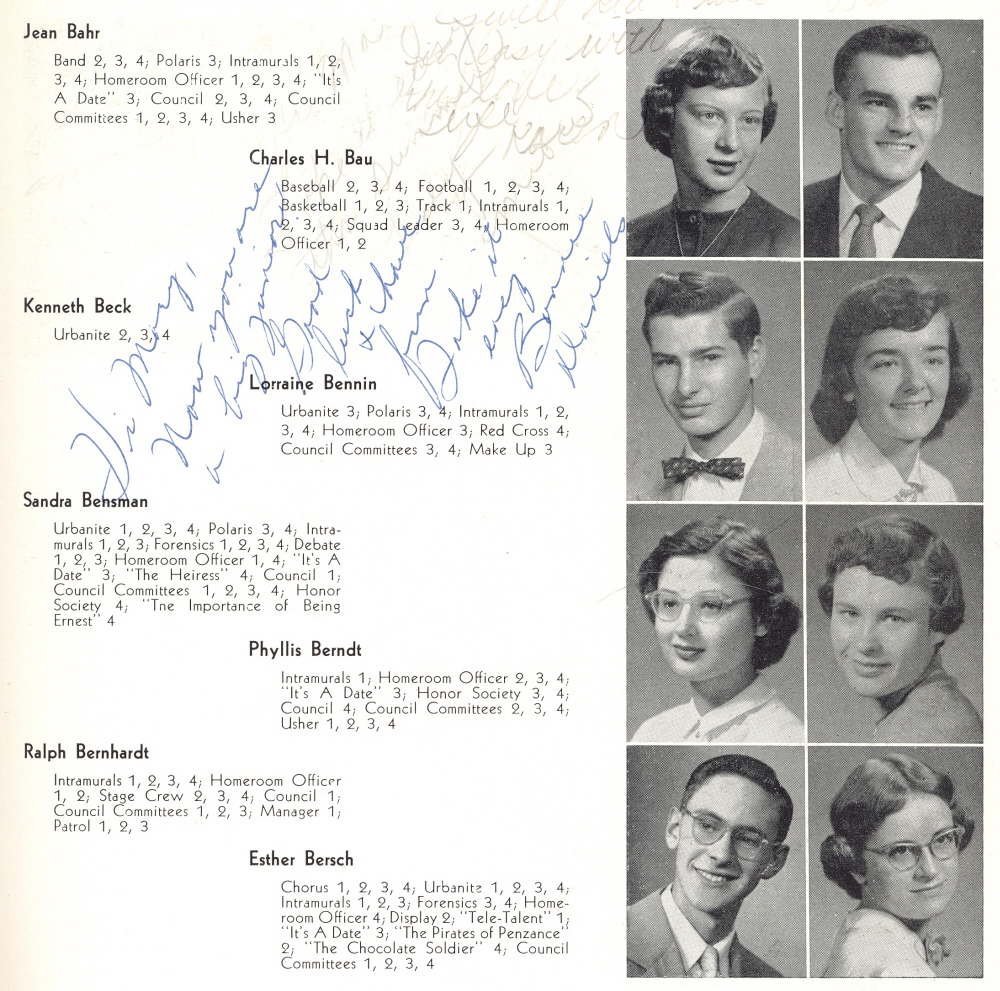 1953 Sheboygan North High School, Page 19: Jean Bahr, Charles Bau, Kenneth Beck, Lorraine Bennin, Sandra Bensman, Phyllis Berndt, Ralph Bernhardt, Esther Bersch.