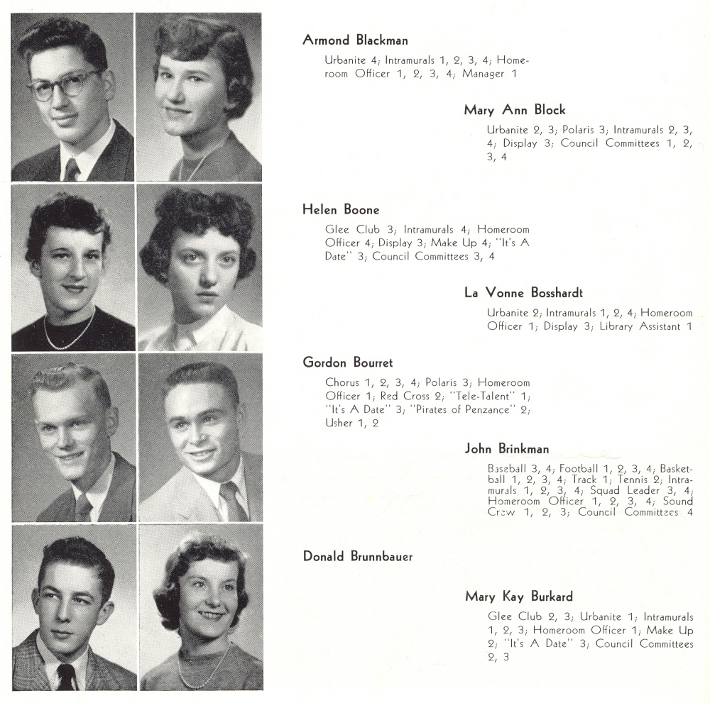 1953 Sheboygan North High School, Page 20: Armond Blackman, Mary Ann Block, Helen Boone, La Vonne Bosshardt, Gordon Bourret, John Brinkman, Donald Brunnbauer, Mary Kay Burkard.